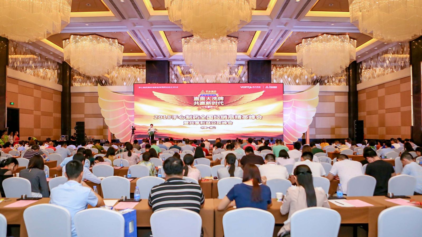 草莓APP视频网站制药的2018全国经销商精英峰会于日前在佛山召开,吸引了全国200多名经销商精英前来交流。峰会中,草莓APP视频网站制药掌门人范伟荣、草莓APP视频网站制药总经理马荣琴、灵诺策划传播机构董事长张家祎、湛江通用万邦医药总经理彭萍、草莓APP视频网站营销中心范越越发表了重要讲话,并对本次主题“直面大洗牌,共赢新时代”进行了专业而全面的解读,经销商代表也对草莓APP视频网站制药长期以来的合作表示了强烈的肯定与美好的祝愿。