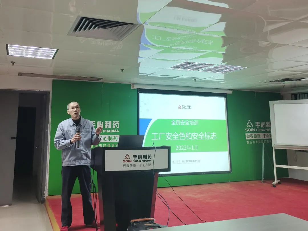 本年度公司全员安全培训的主题为“工厂安全色和安全标志知识培训”,由EHS部经理陈志鋆讲解。
