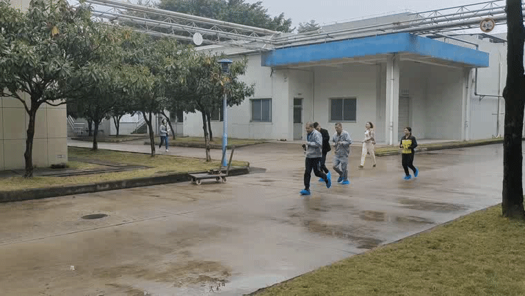 10分钟后,公司所有员工全部集合完毕。相比去年,集合时间提早了1分钟。
