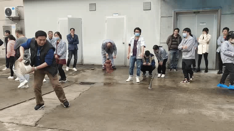 随后,车间代表为大家示范灭火器、消防水带的操作步骤,员工学习后进行现场实操。